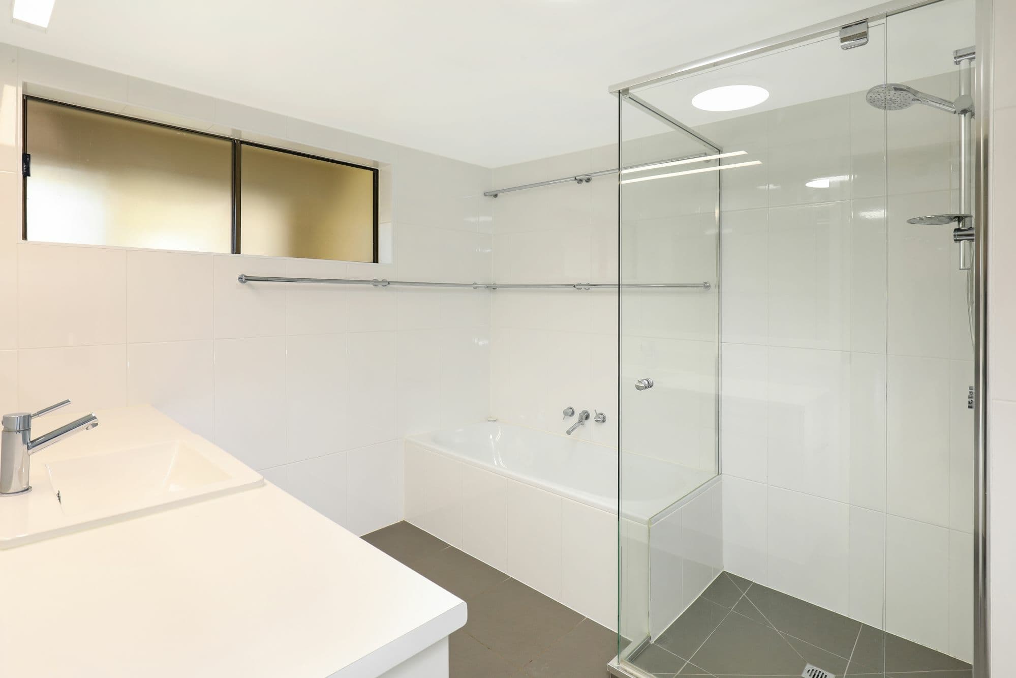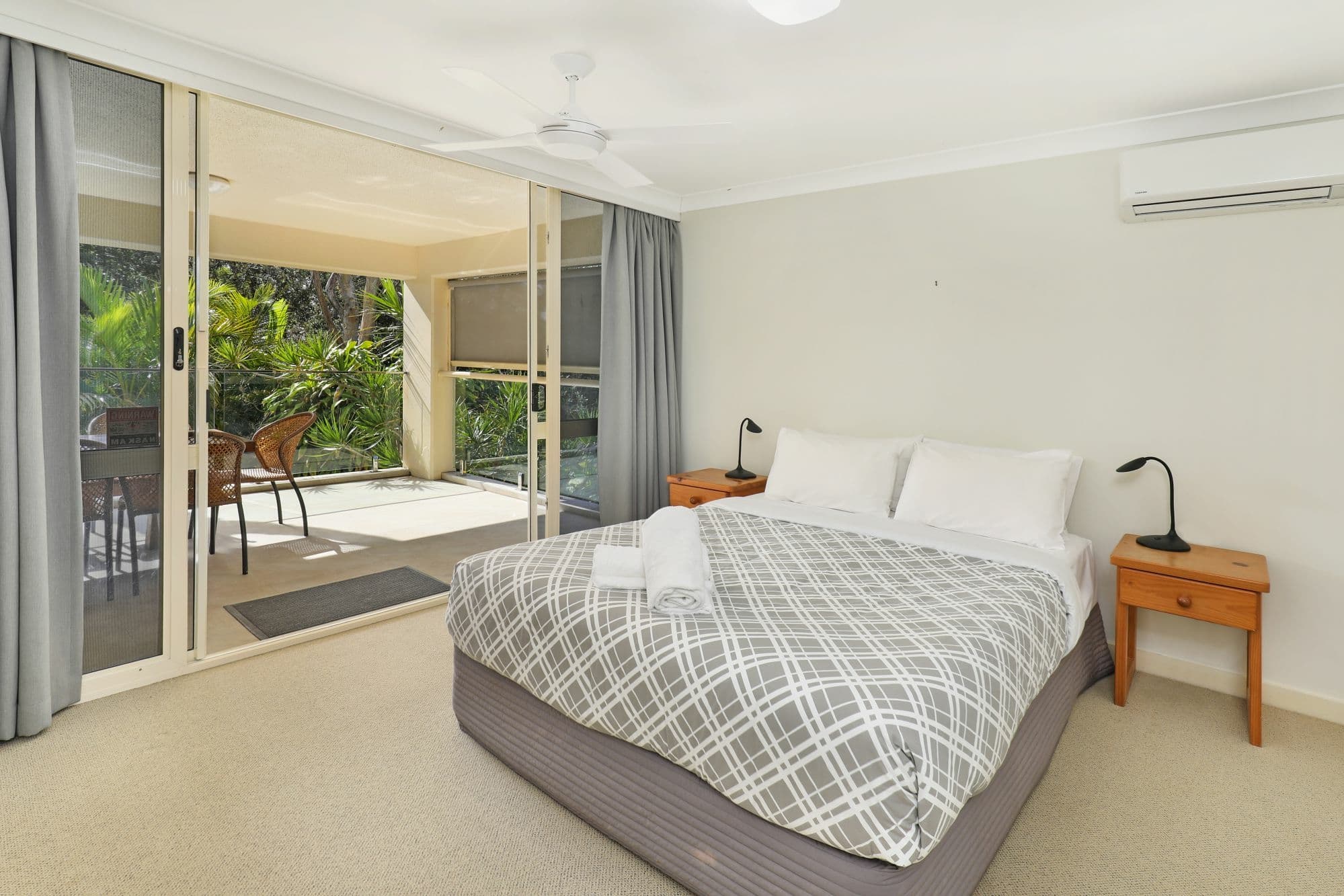 This apartment has air-conditioning in two of its bedrooms, plus ceiling fans and secure undercover parking for two cars.