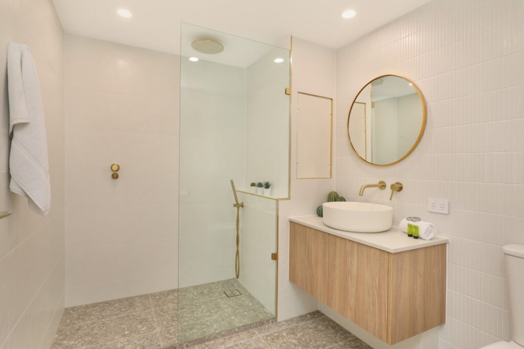One king bedroom with ensuite, one queen bed, and one double bed.